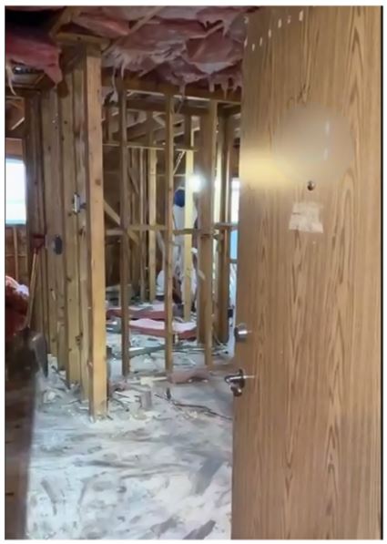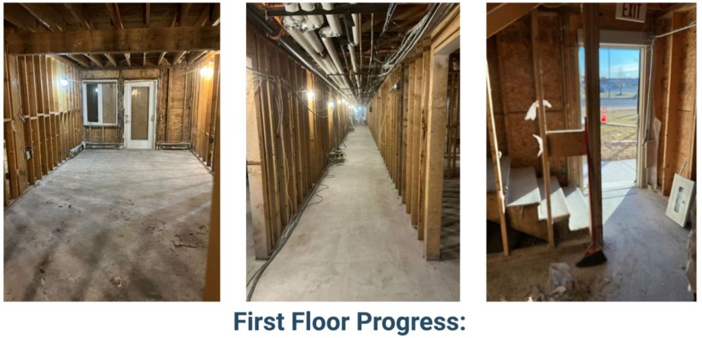 On October 1, 2025, the process of Selective Demolition began. This encompasses removal of all contents, mold mitigation, stripping the entire building to bare studs, and setting up heat and insulation to protect the foundation from damage over winter. At the time of writing, the damaged roof is being removed to prepare for construction of the new, permanent roof which will be built to updated codes. The fourth floor walls will be reframed with structured support where needed.
